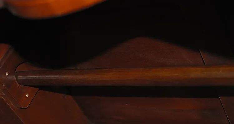The bridal armoire compartment consisting of a wooden hanger and two adjustable height wood shelves.
