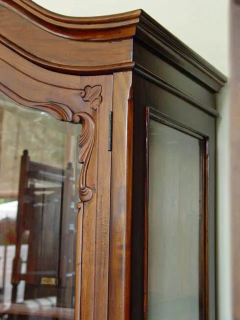 Bonnet top wood carving crown of the Chippendale vitrine