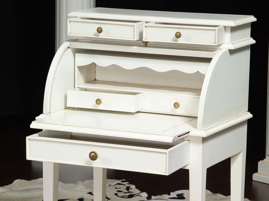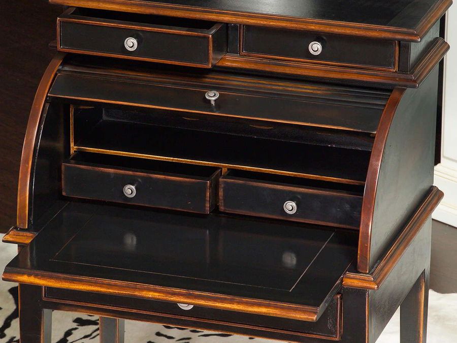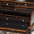 A 19th century working desk remade of solid mahogany wood, 2 drawers top most, 2 drawers at the top leaf aprons. Wooden slats rolling slide covered removable compartments at the desk top, consisting of drawers, shelves, and a door.
