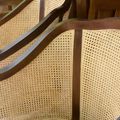 A revival of British classic colonial tub chair handmade of teak and natural rattan. The chair is designed for waiting room, to match our the St. Barclays sofa. Half round shape similar to common tub chair upholstered seat for comfort.