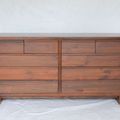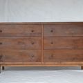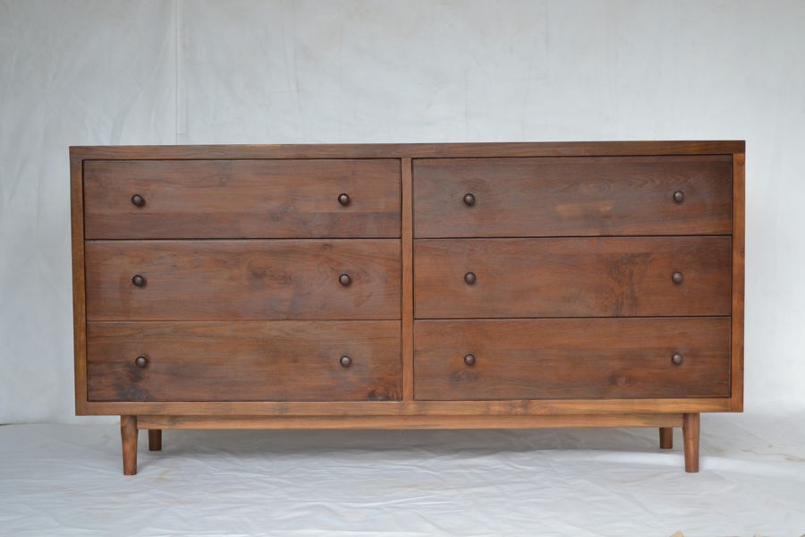Made of reclaimed wood from demolished old house, the Mangus dresser is a true eco friendly furniture piece. Six drawers in 2 column, 2 drawers in a row, dovetailed joints, 2 wooden knob pulls at the front of each drawer.