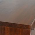 A simple and sturdy console table handcrafted of high-grade teak wood, features uniform color and straight grains. The teak console table shows no dead knots on its surface. It features a large drawer on its front side employs steel runners and knob pulls.