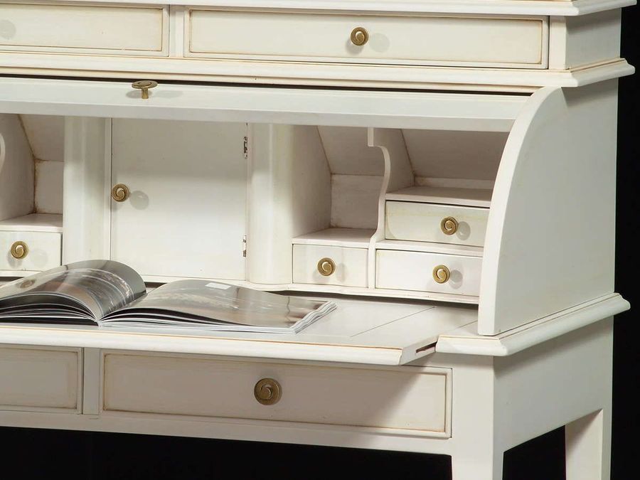 Strong but elegant, our vintage dressing table is custom made to Italian classic furniture design. The table features three small drawers inline on the top, and three large drawers under the top leaf. Four hexagonal shape legs reinforced with X stretcher support the table top standing on the floor.