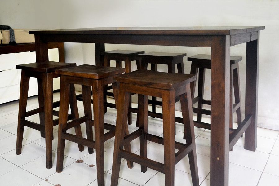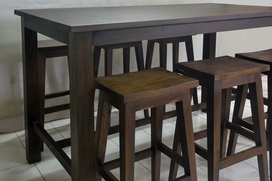 The Communal dining furniture will perfectly fit a small dining room with a high dining table matched with high stools. Plantation harvested teak wood, made with traditional furniture construction, these pieces will stand for decades.