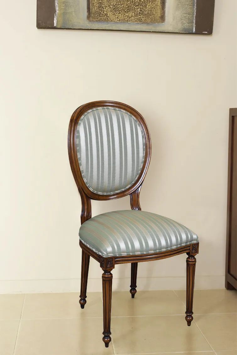 Louis XVI Medaillon chair stripes fabric upholstery mahogany frame