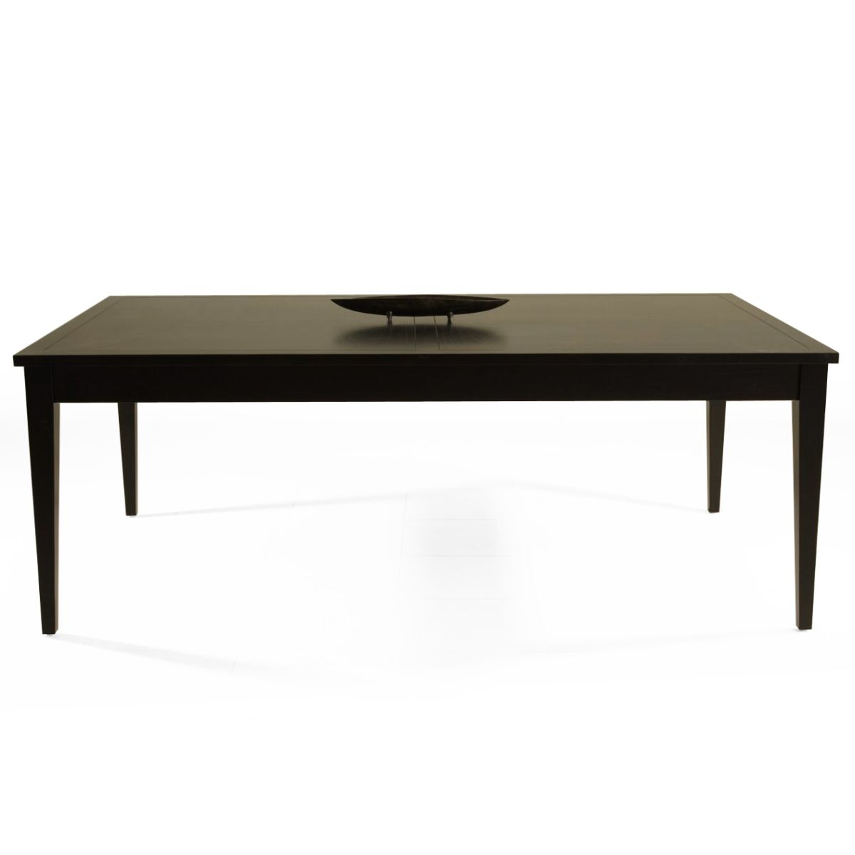 Simple dining table curved legs, made of teak wood. Floating panels top leaf.