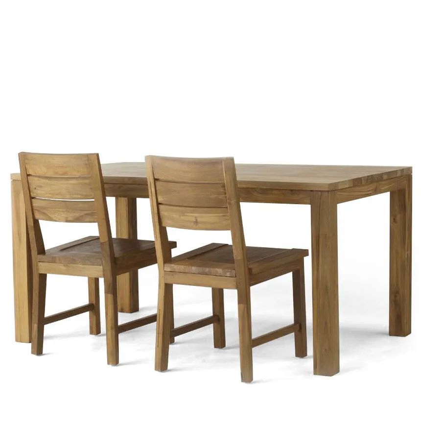 Simple dining chair taper backrest top handmade of reclaimed teak wood. Plain and sturdy four legs, solid wood seat and top backrest.