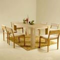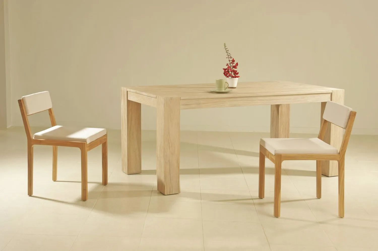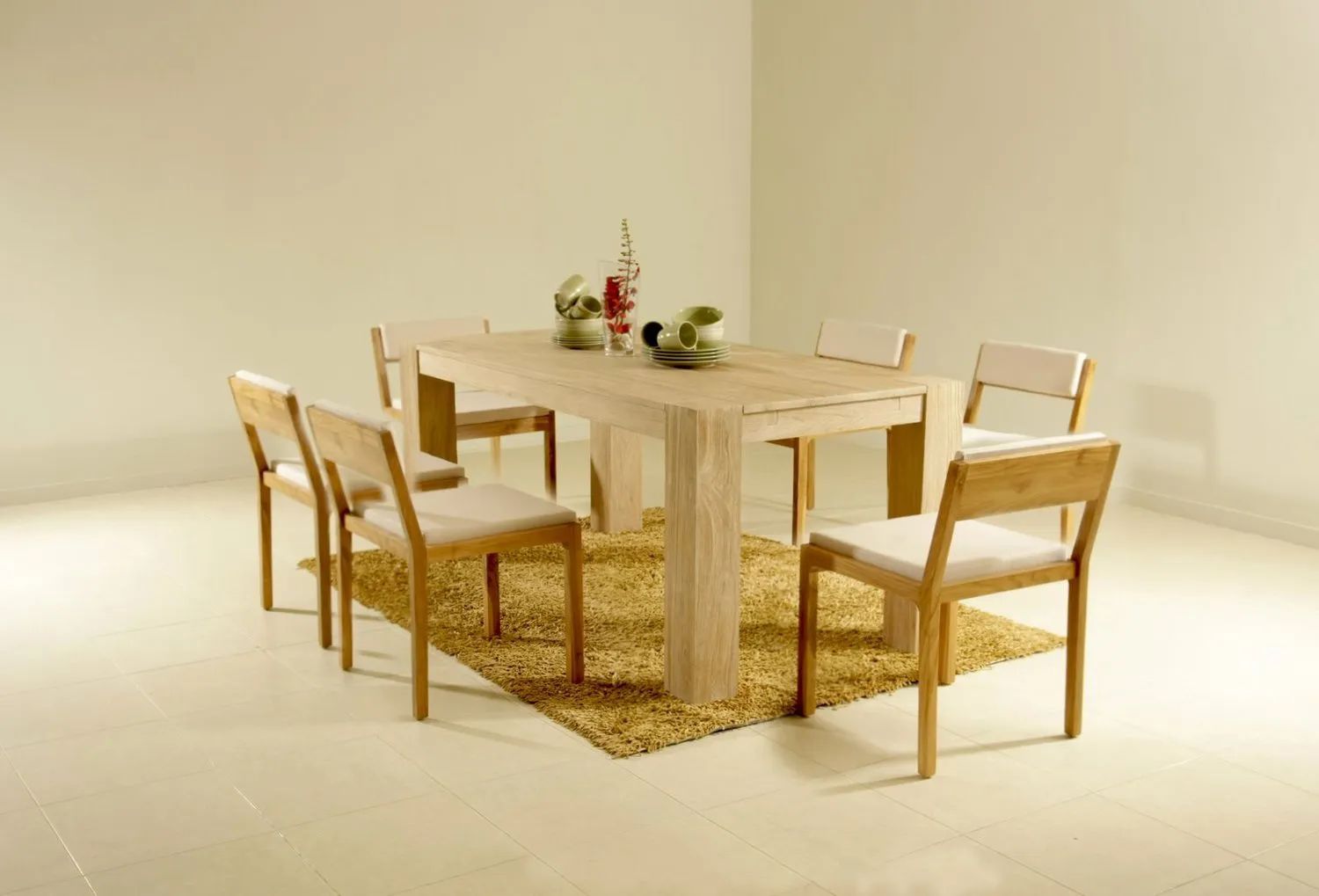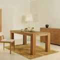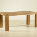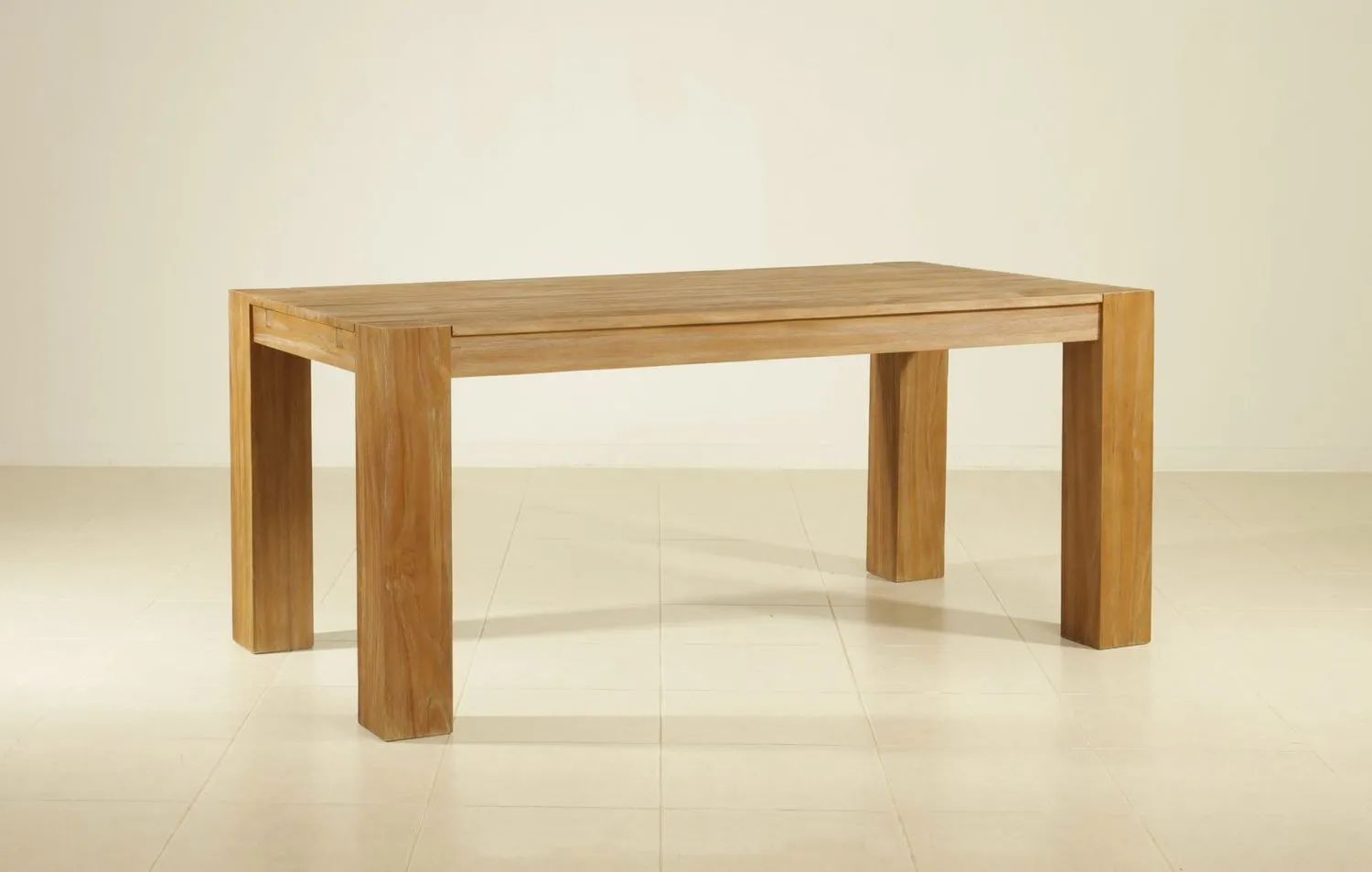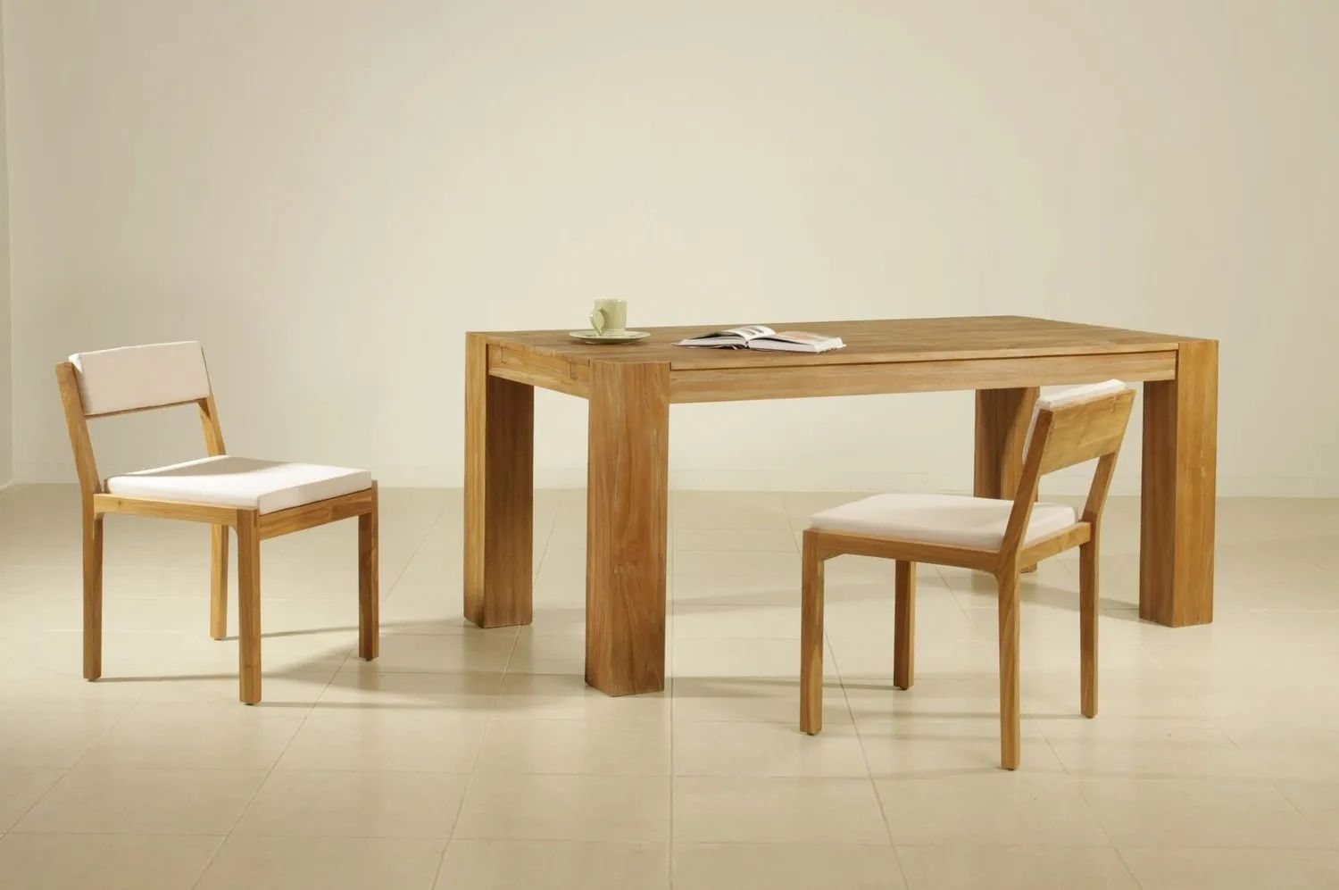 Modern and contemporary style dining table handmade of reclaimed teak wood. Strong and big size four legs, wooden corner bracket joints to thick solid top leaf.
