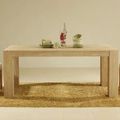 Minimalist furniture, a plain console 2 drawers. Made of teak wood, mitered joints legs to top leaf.