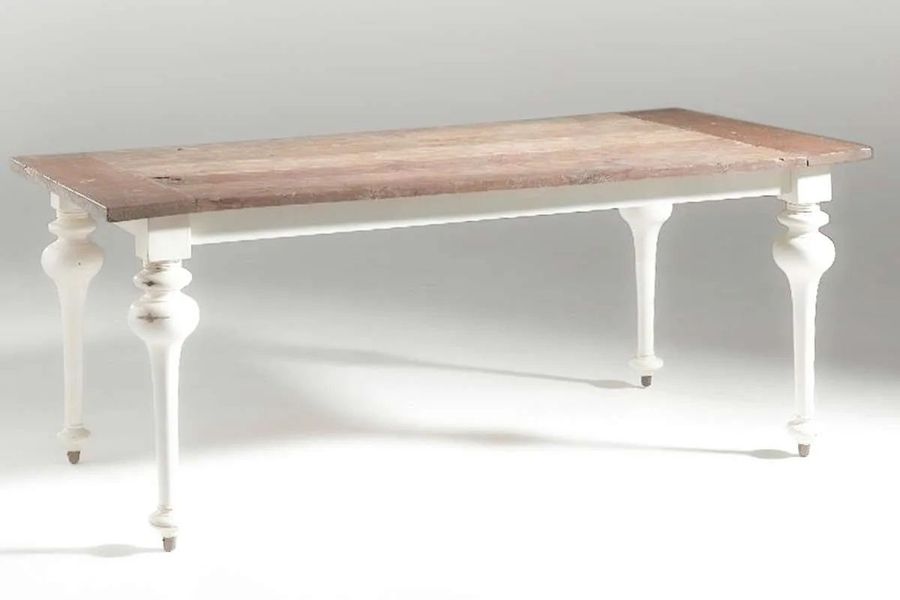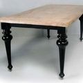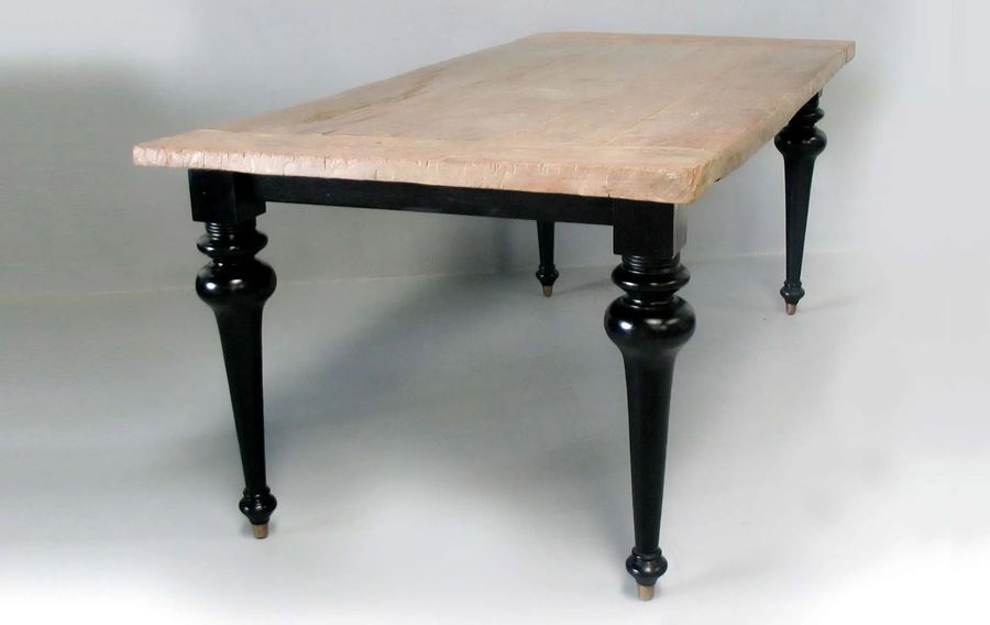 Beautiful table that will bring classic feel to your dining room, old teak wood top leaf natural patina color.