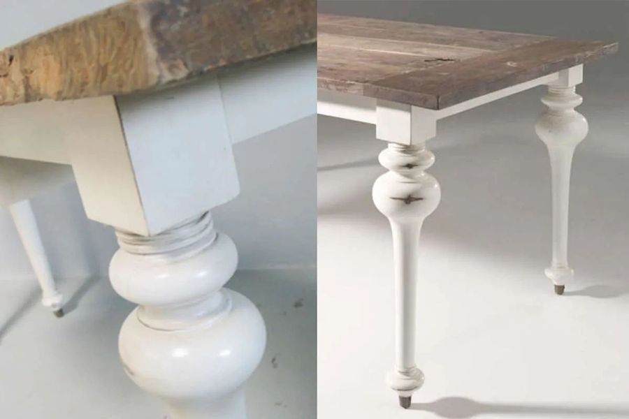 Furnish your dining room into a country style with our plain top leaf on mission block pedestals dining table handcrafted of rain wood. The table feature a thick top leaf on two pedestals in different shape, left pedestal accented with solid wood bars and right pedestal plain solid block.