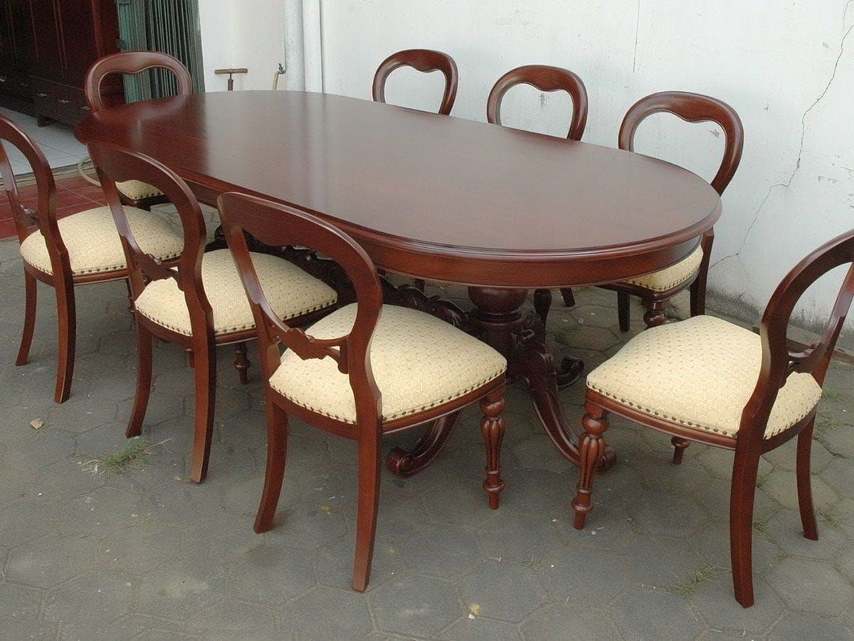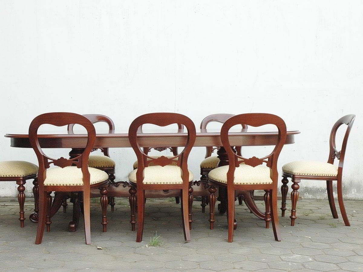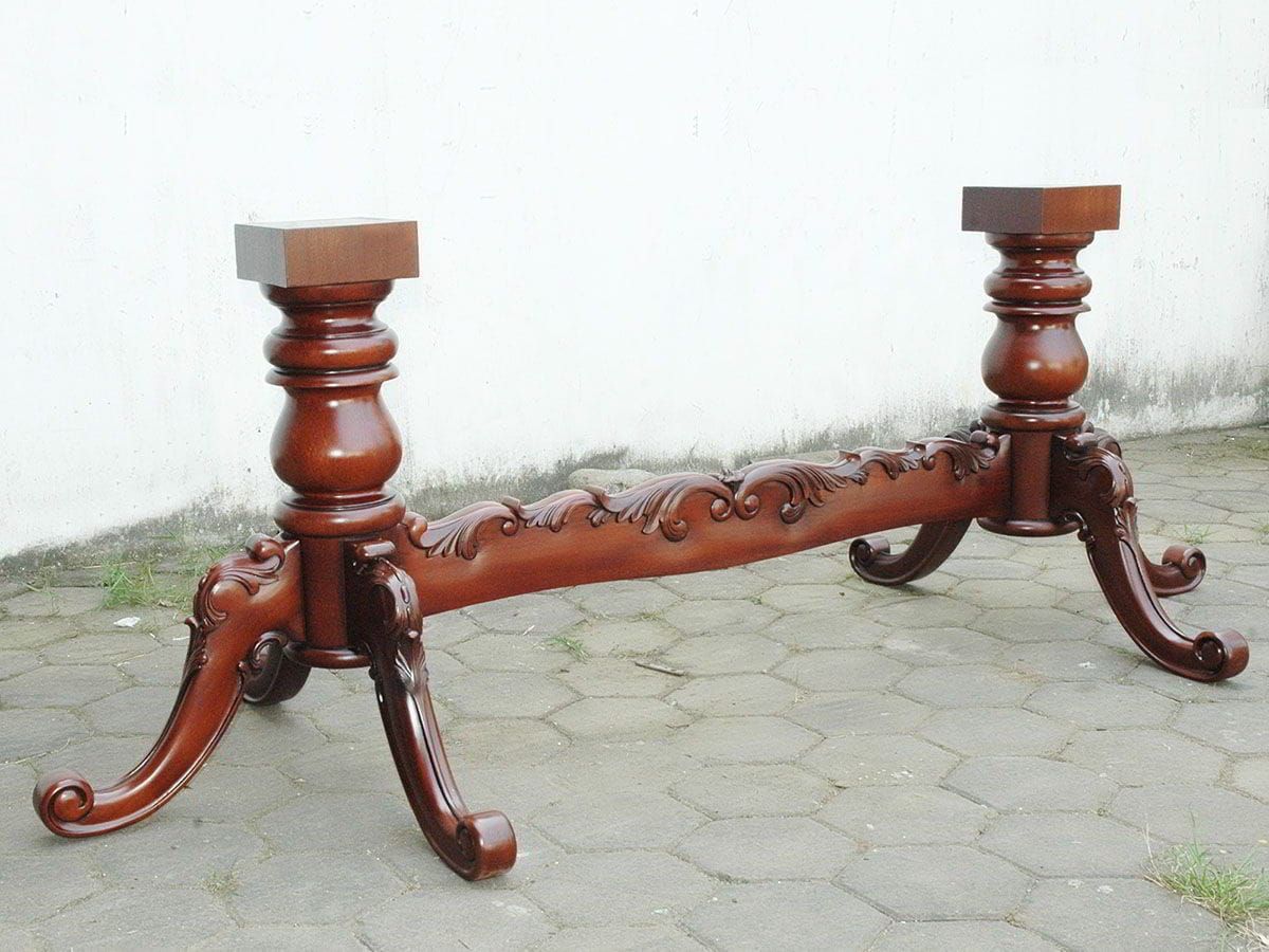 Our twin pedestal table is made of mahogany solid wood. Oval shape top leaf with profiled edge, fastened to the aprons using wooden clips to allow the movement of the solid wood while extracting and shrinking.