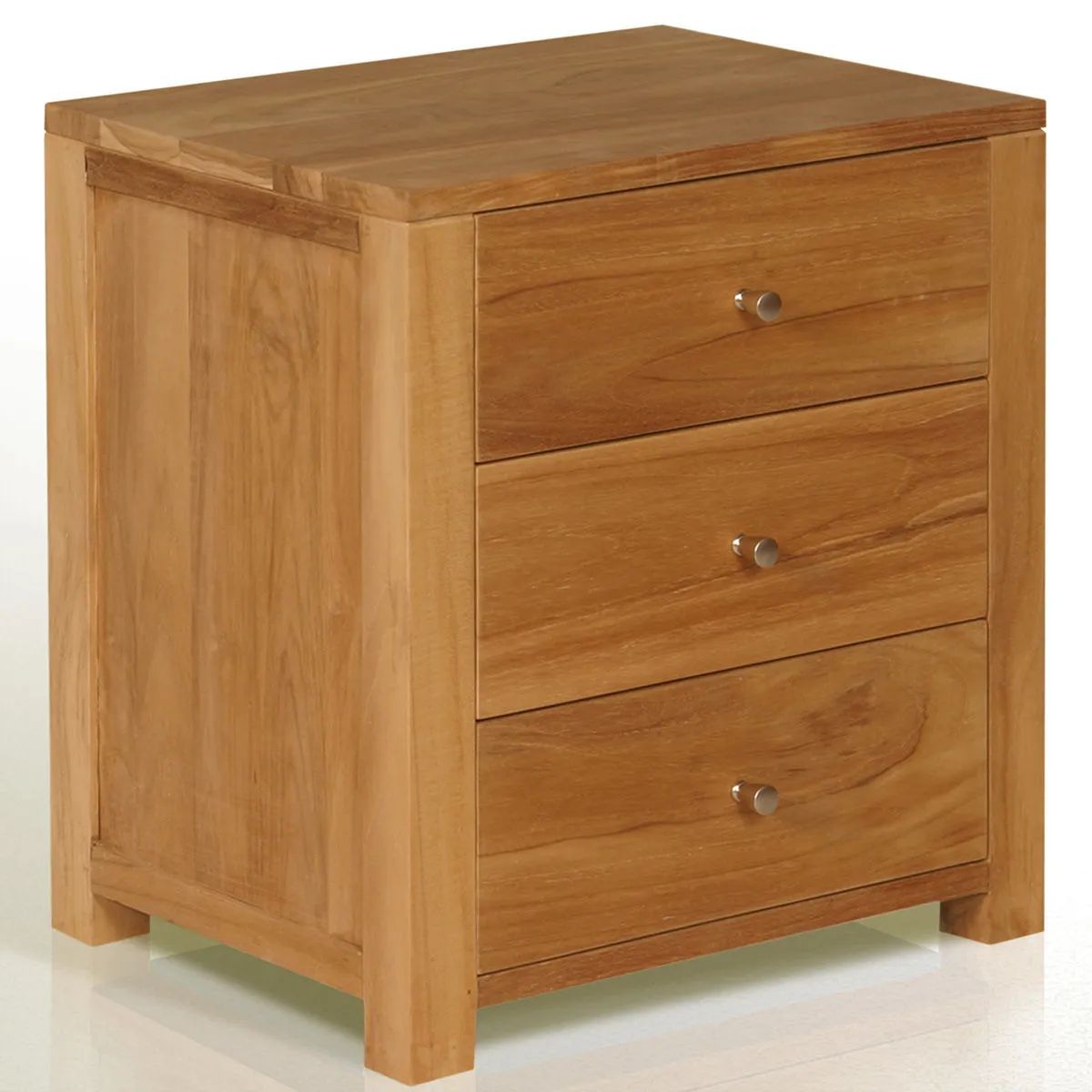 Sturdy chest of drawers made of grade A teak wood. Dovetail joint drawers, European style rails, stainless steel knob drawer pulls. Floating panels back, left, and right side, solid wood top.