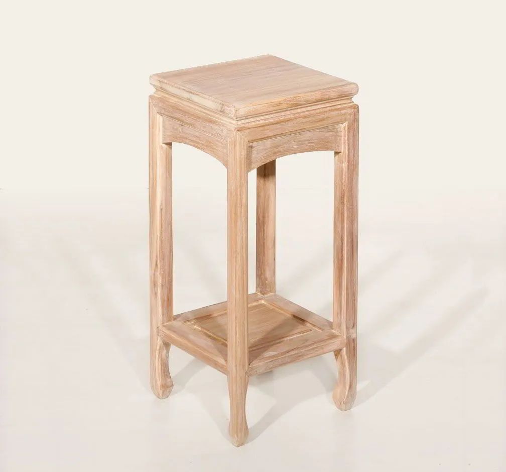 A slim high side table of the oriental style wood furniture handcrafted of sustainable plantation harvested teak. Mitered joint solid wood frame and floating panel top leaf on four square legs. Raised panel shelf stretcher reinforce the legs at the bottom.