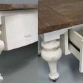 Beautiful and elegant console table 1 drawer, reclaimed wood from Indonesian traditional old table top leaf on top of new mahogany solid wood legs.