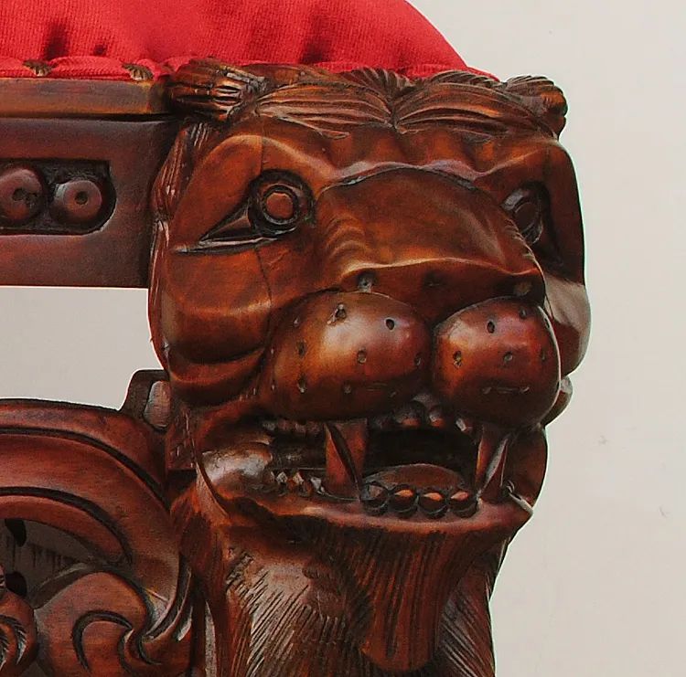 The most interesting part of the chair is the lion carving on the armrest front. Imagine sitting powerfully on the chair and hold lion head in each of your hands.