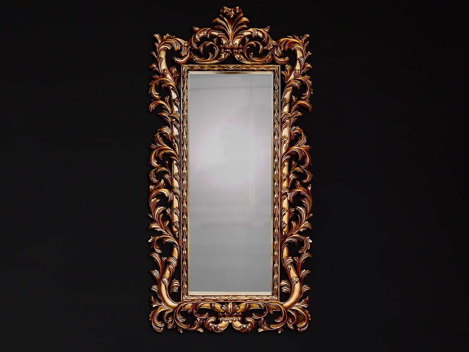 Classic elaborate caving frame mirror handcrafted of mahogany wood.