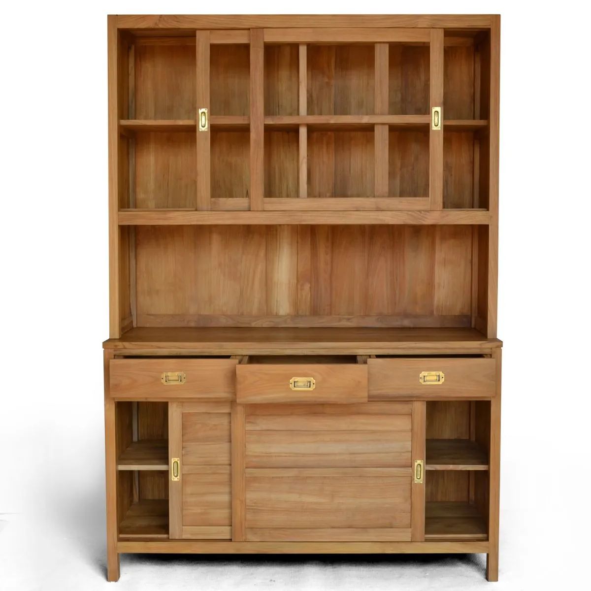 Teak furniture kitchen buffet in plain and simple style handmade of solid wood. 2 doors and a drawer bottom, 2 shelves top hutch.